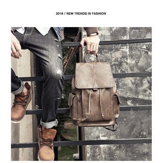 FLASH SALE Fashion Kapasitas Besar Kanvas Tas Ransel Pria Kulit Perjalanan Vintage Pria Mahasiswa Sekolah Tas