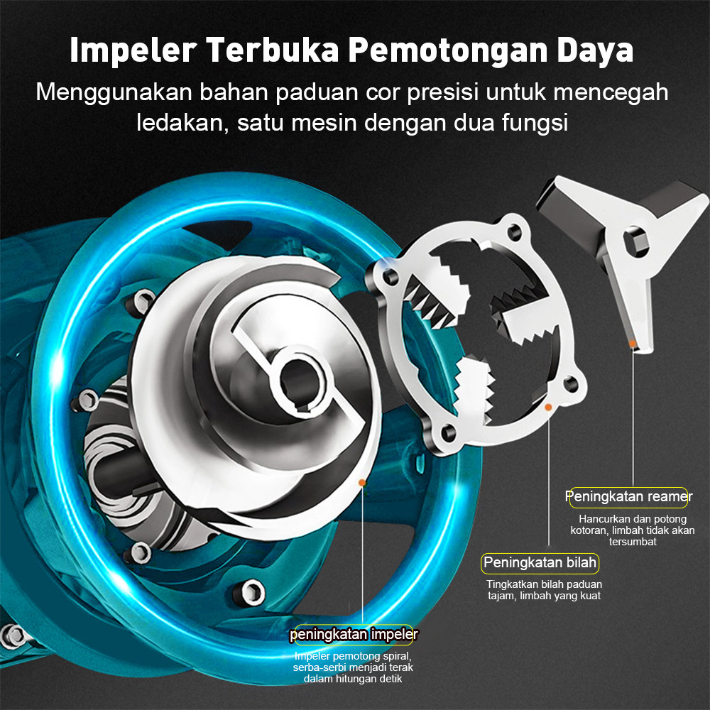 Pompa Celup Air Kotor 1000w Submersible Pump 220V Pompa Jet Jenis Pemotongan Blowdown (100 PERSEN Tembaga)