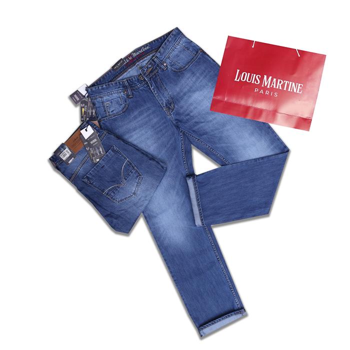 CELANA JEANS PANJANG ORIGINAL LOUIS MARTINE FASHION FOR MEN REGULER STANDAR PRIA NYAMAN DISTRO DENIM D3W4SA COWOK KEREN LEMBUT - BIRU TUA, 28