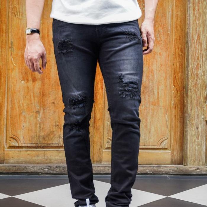 WEIRD JEANS - BLACK ORLEANS - CELANA JEANS PANJANG PRIA SKINNY FTI SLIM FIT STRECH RIPPED SOBEK NYAMAN KEREN - BLACK ORLEANS, 28