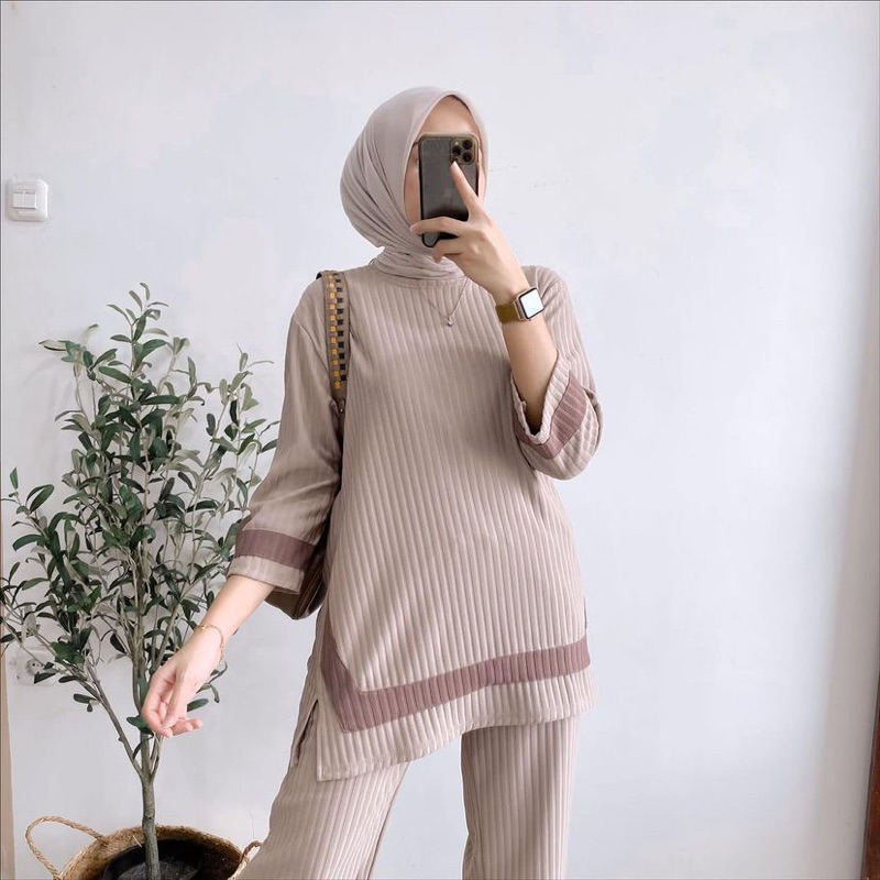 Setelan One Set Knit Hornet Wanita Premium Terbaru Viral Kekinian - Amira Set