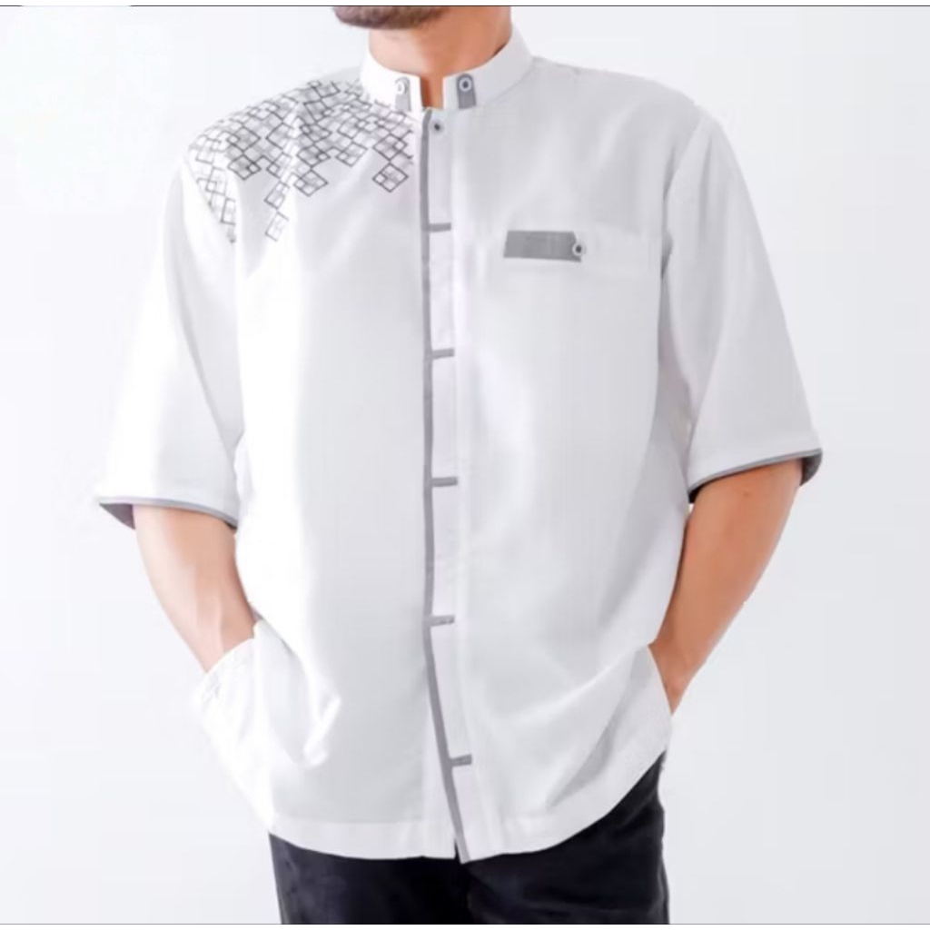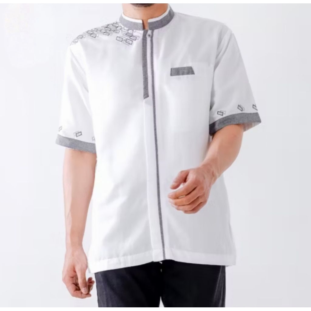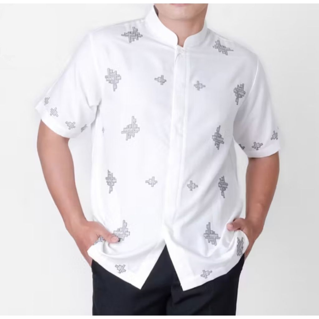 Baju koko pria dewasa premium elegan koko bordir/koko.uzma Baju koko Kemeja Sanghai Katun Putih Polos Pria Dewasa Lengan Pendek Baju Koko dewasa
