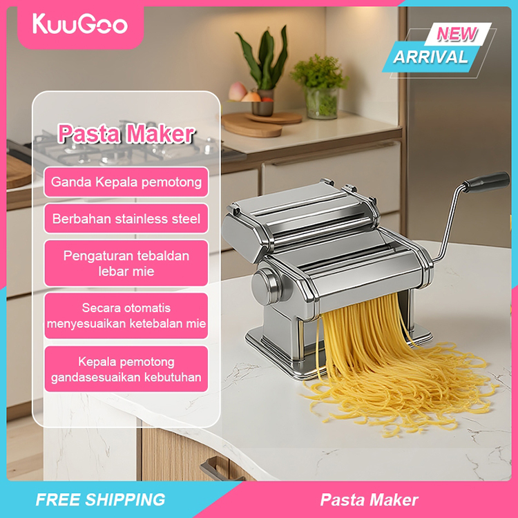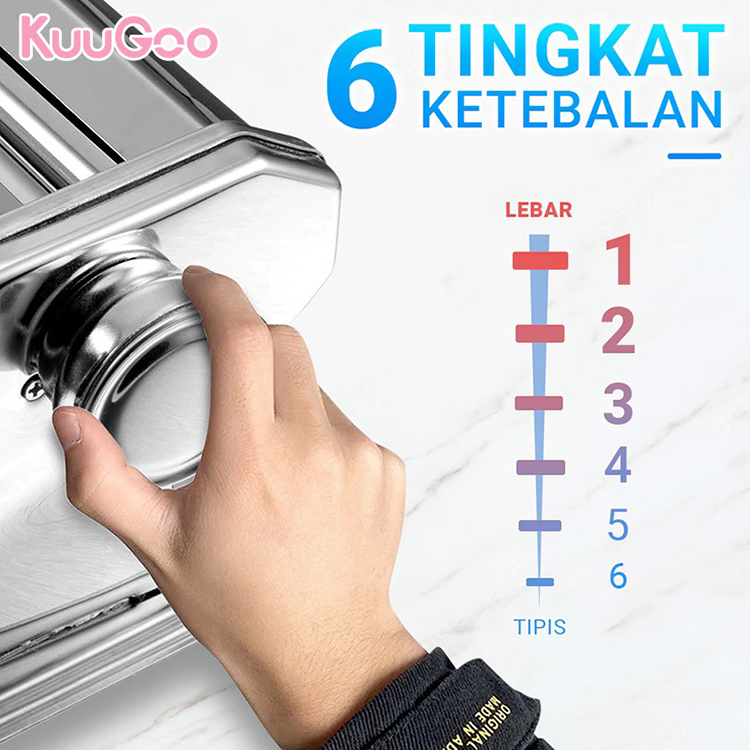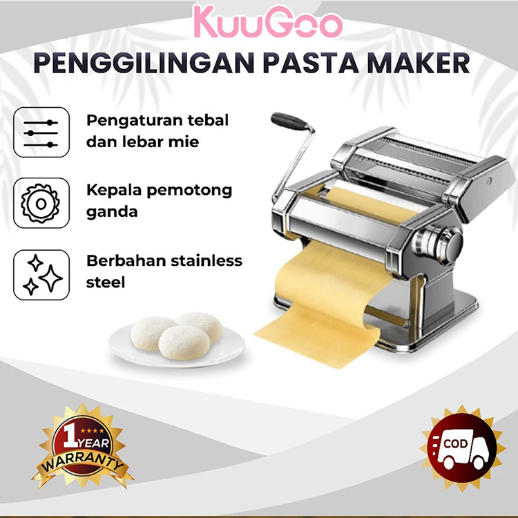 KUUGOO Mesin mie Penggiling mie Gilingan Mie Pasta Molen Kulit Pangsit Stainless Steel A-905 | Pasta Maker Tahan Karat &