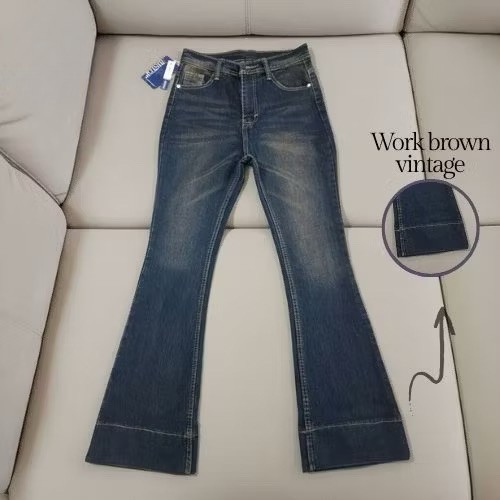 Jennie-Highwaist Cutbray Jeans Celana Flare Panjang Stretch Wanita Retro Vintage Lipat Bawah