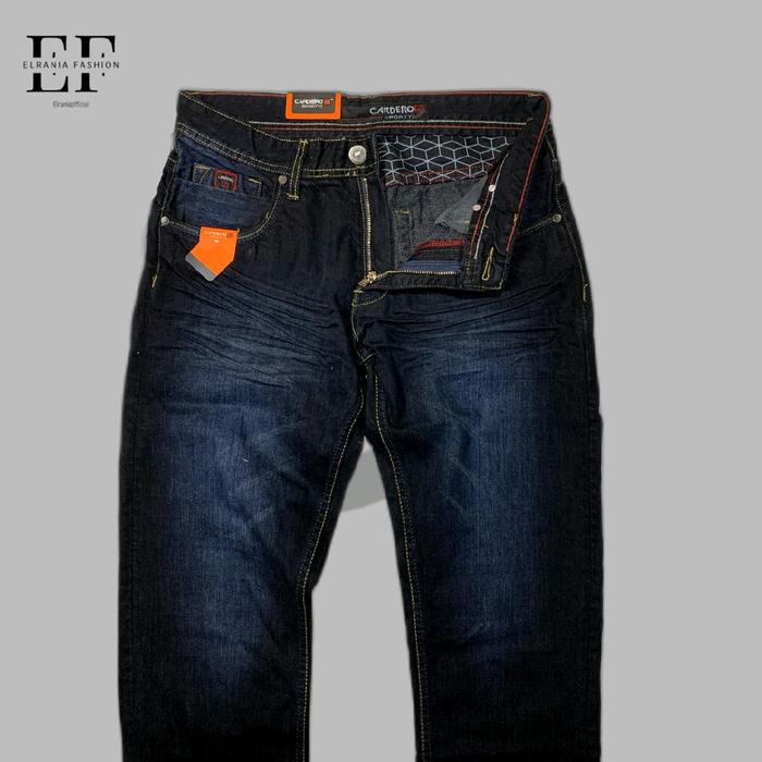 CARDERO69 [SE] CELANA JEANS DENIM PRIA PANJANG CARDERO 69 SPORTY ORIGINAL SELVEDGE ACCENT RINGKEL REGULAR FIT STANDAR - BLUE BLACK, 28