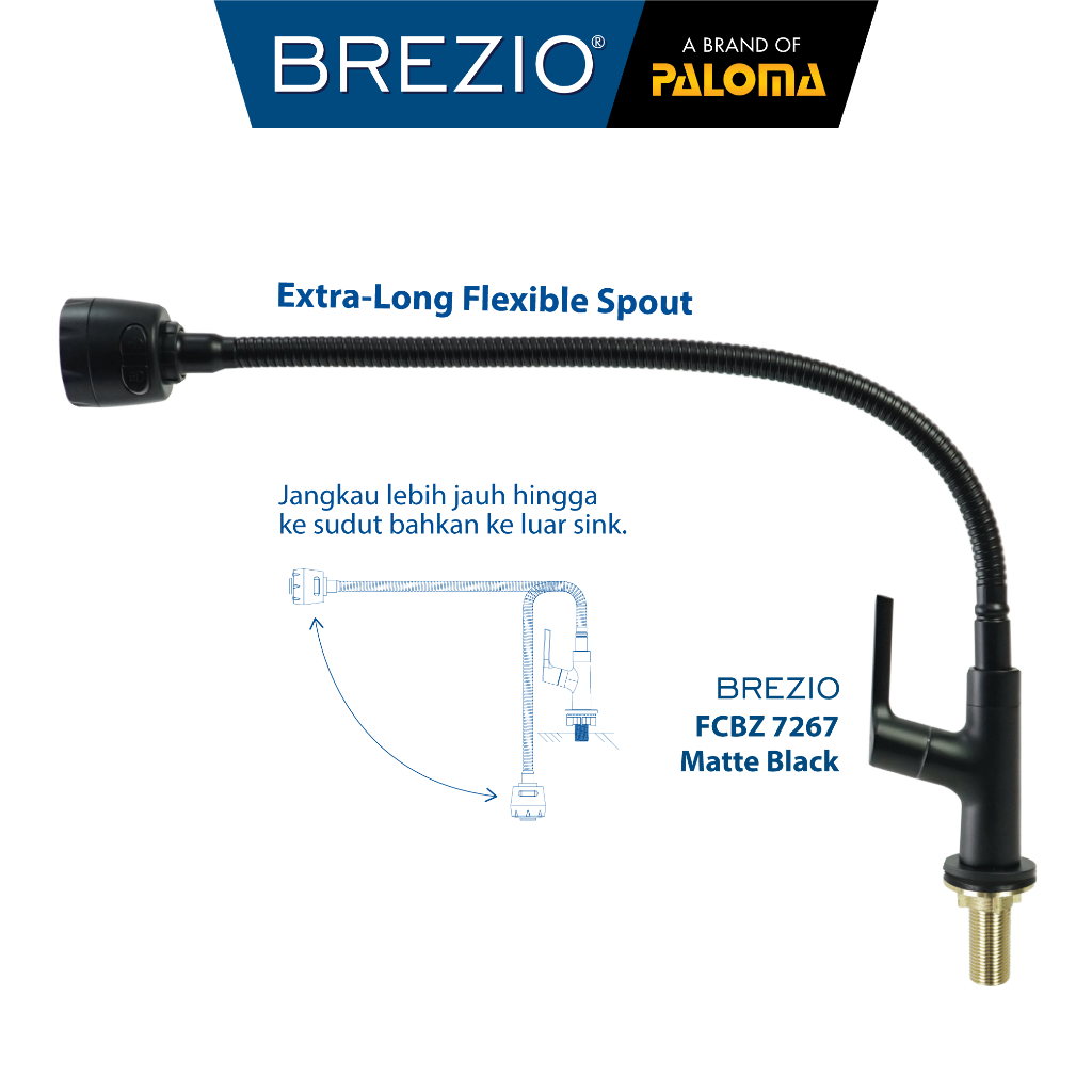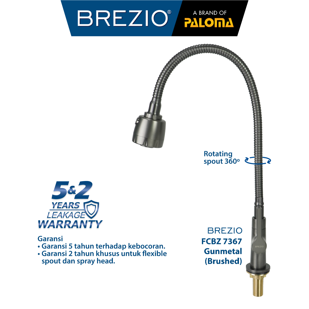 BREZIO Keran Dapur Fleksibel Kran Cuci Piring Kran Air Sink Kran Leher Angsa Flexible Brass Kuningan Chrome Krom Silver Gunmetal Gun Metal