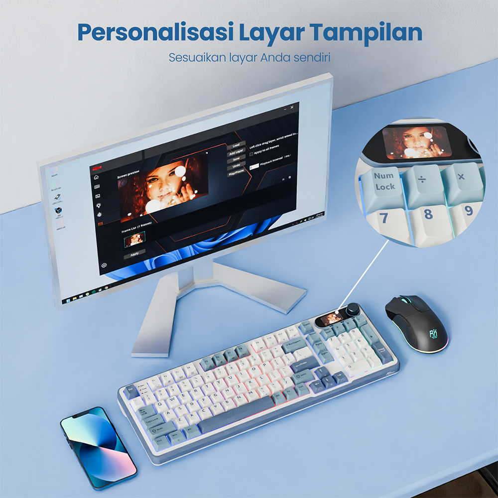 Royal Kludge RK S98 White Blue Light Could 98 Key Gaming Keyboard