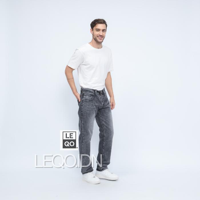 LEQO JEANS CELANA PANJANG DENIM NON STRETCH KUALITAS PREMIUM HITAM ABU MODEL BASIC STANDAR REGULER & CUCIAN WISKER TRENDI NYAMAN - 28