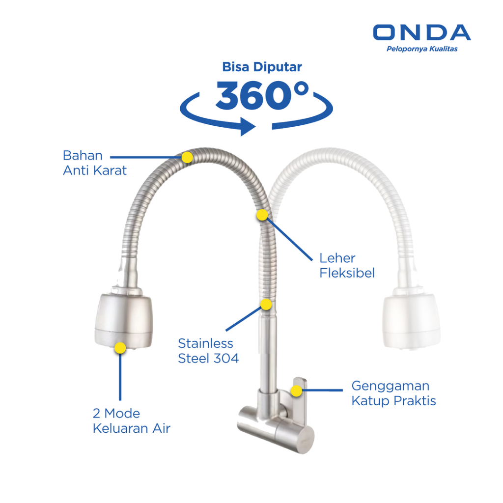 ONDA Kran Dapur Cuci Piring Angsa Tembok Fleksibel V-SUS FLEXI TEMBOK 1/2"