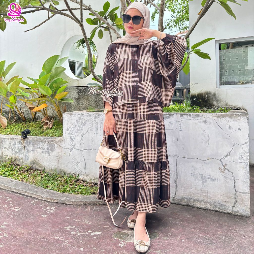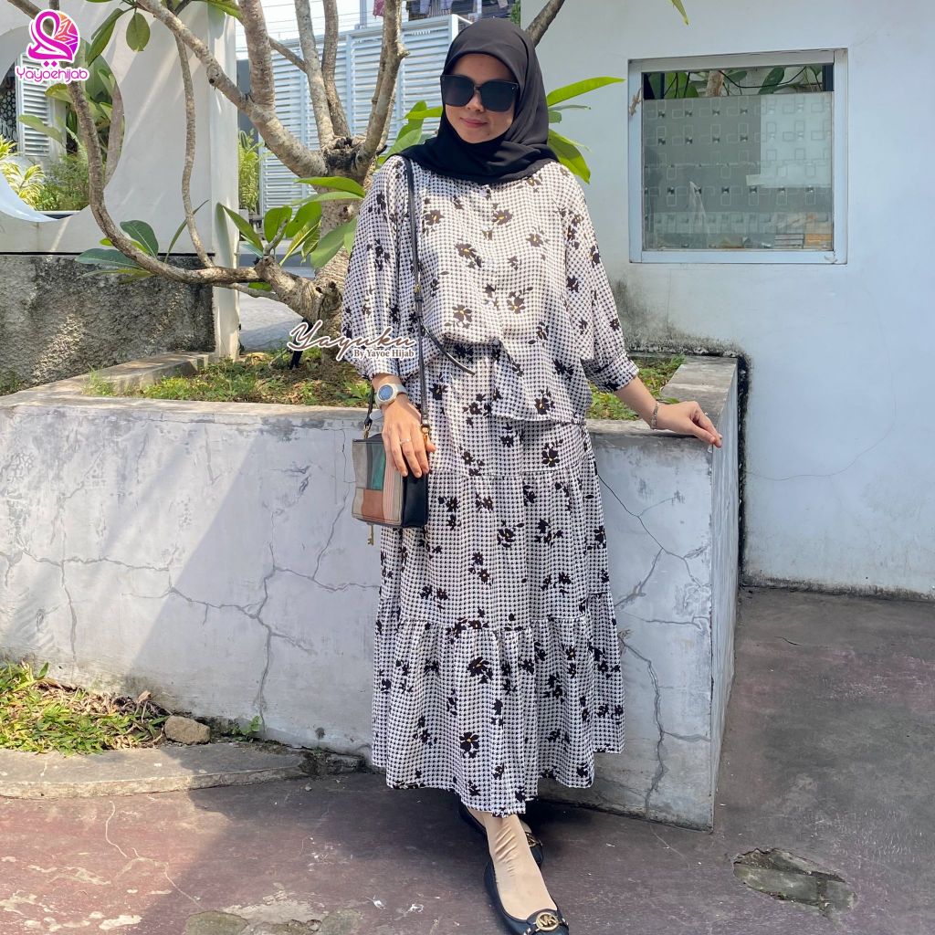 Hania One Set 2In1 Friendly Terbaru Kekinian Bahan Rayon Setelan Rok Baju Muslimah Wanita Yayuku
