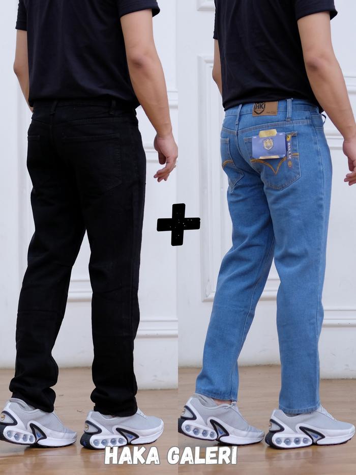 CELANA JEANS STANDAR PRIA REGULER BELI 1 GRATIS 1 (2PCS) - NAVY + BIRU MUDA, 27