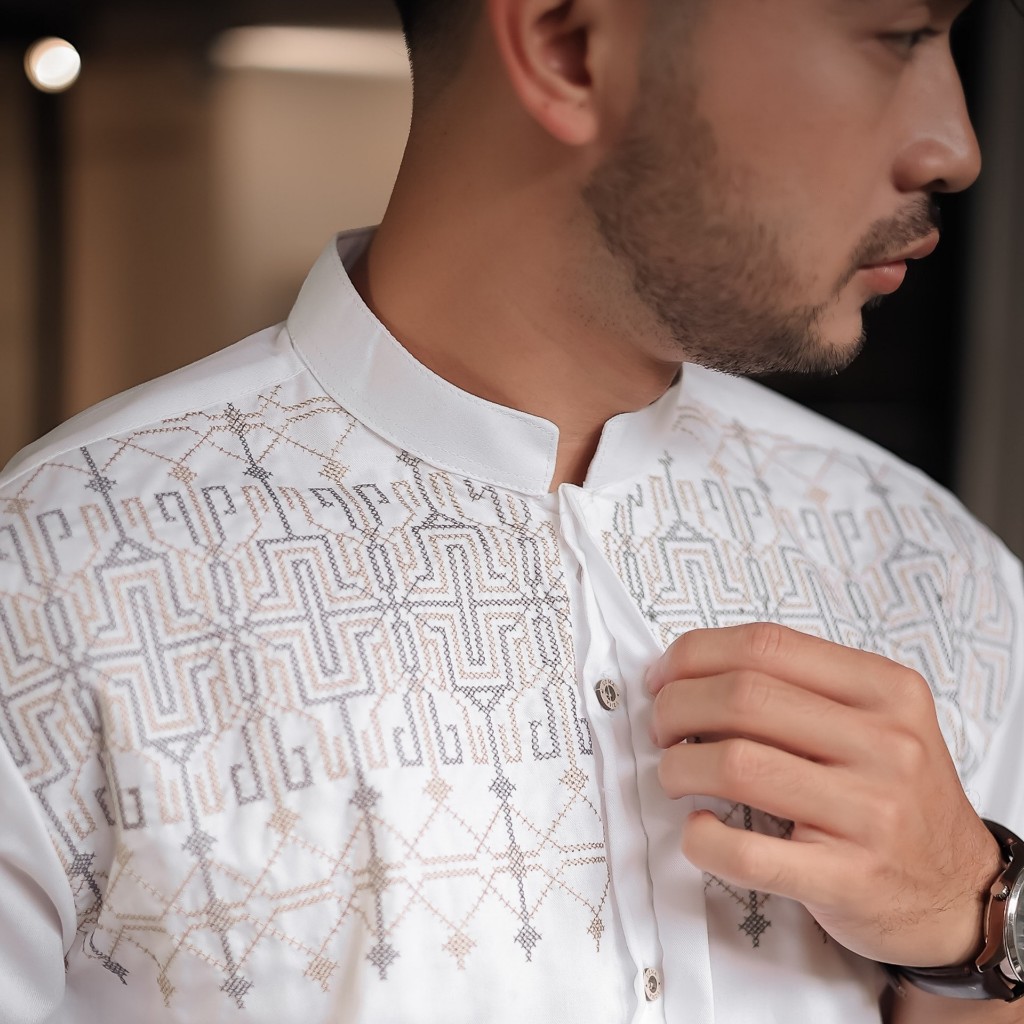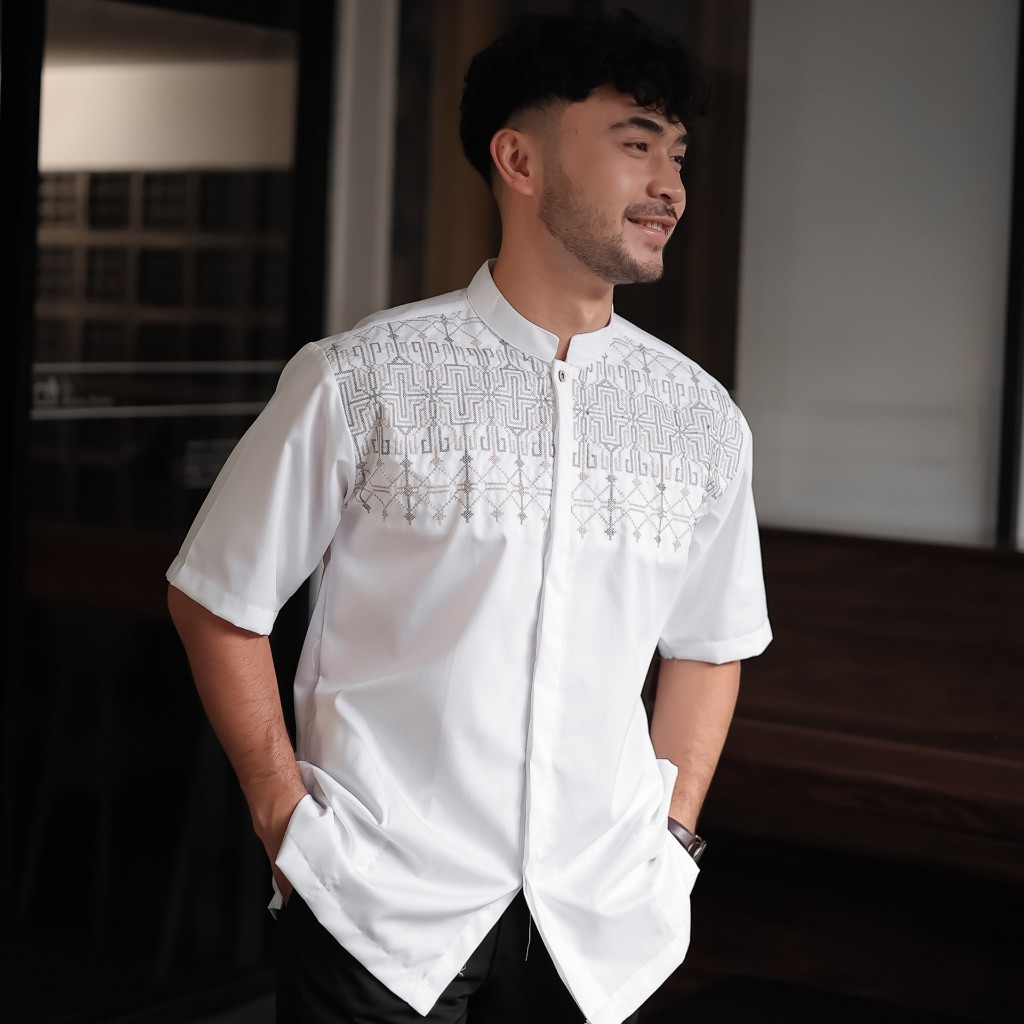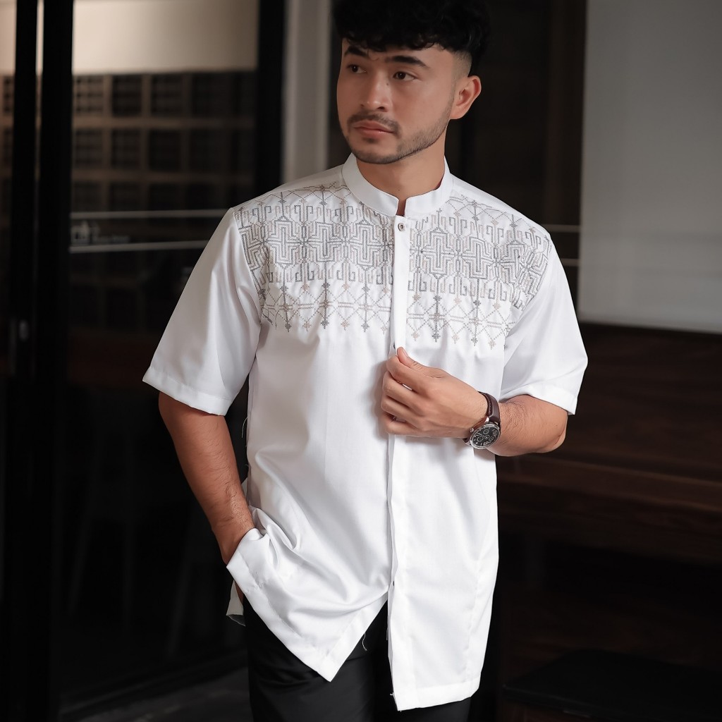 koko.uzma Baju koko Kemeja Sanghai Katun Putih Polos Pria Dewasa Lengan Pendek Baju Koko Putih Polos
