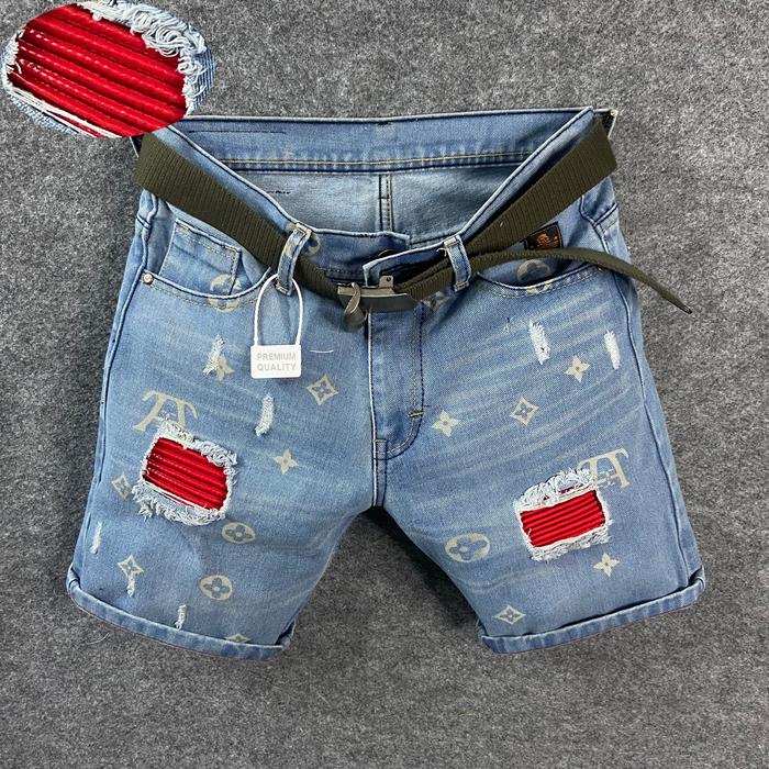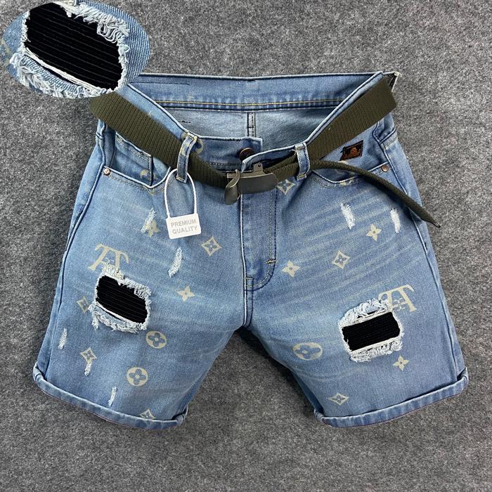 CELANA JEANS PENDEK SOBEK PRIA MODEL TERBARU LIGHT BLUE DISTRO - MODEL 1, 27