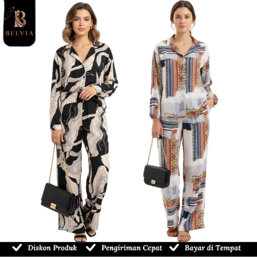 Belvia - One Set Jumbo Premium Setelan Rayon Jumbo / Setelan Wanita Jumbo /One Set Rayon Motif Wanita Terbaru