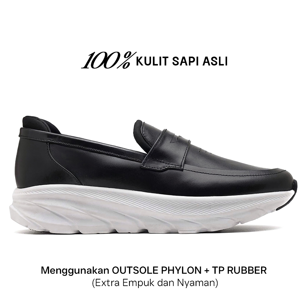 KENZIOS SCENE 1 BLACK - Sepatu Formal Kulit Asli Pria Loafer Casual Sneakers Slip on Size 39-46