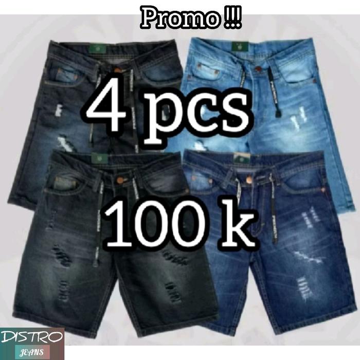 DISTRO JEANS PROMO 100RB DAPAT 4PCS CELANA JEANS PENDEK PRIA SOBEK PREMIUM DENIM NON-STRETCH SIZE 27-39 D3W4SA - 4 WARNA / 4 PCS, 27