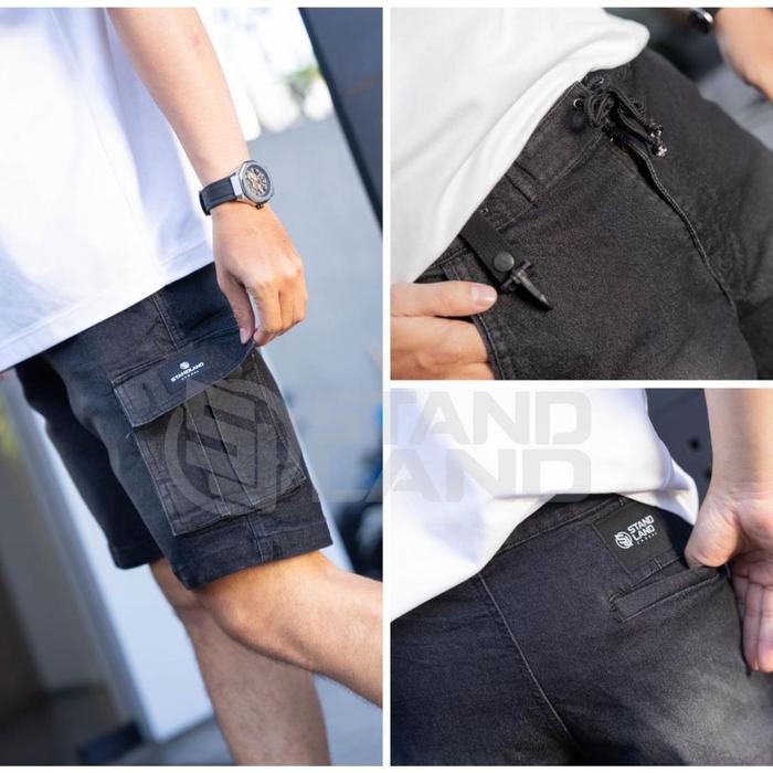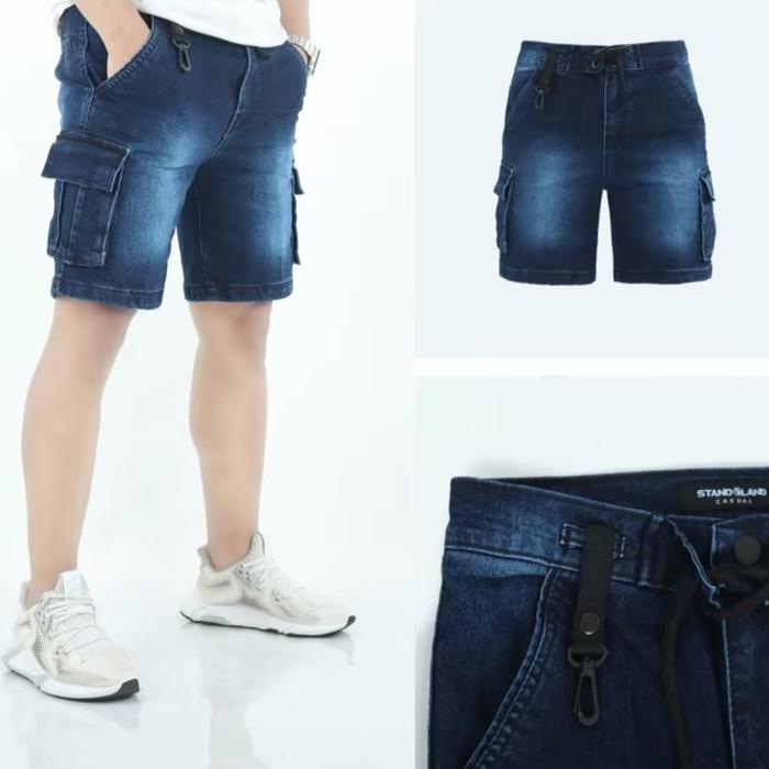 CELANA CARGO JEANS PENDEK PREMIUM ORIGINAL - BIRUWASH, S