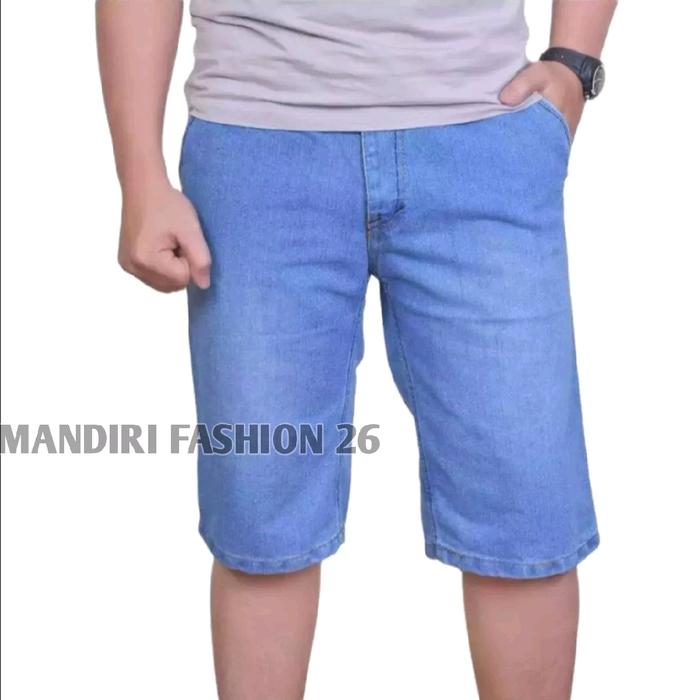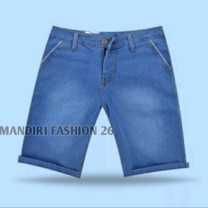 MANDIRI FASHION 26 CELANA JEANS PENDEK / JEANS PREMIUM / CELANA JENAS PENDEK HITAM POLOS TIDAK MELAR SOFT PRIA NONSTRETCH SANTAI - BIRU MUDA, 27