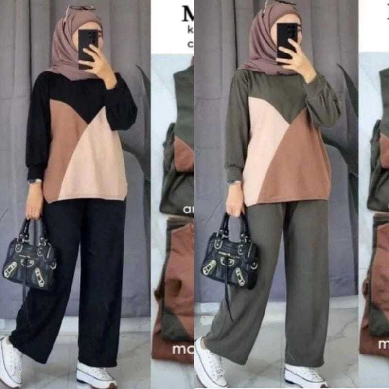 Ld 110.120.130Cm Xl.Xxl.Xxxl One Set Melya Jumbo /Setelan Wanita Kombinasi Crinkle Airflow