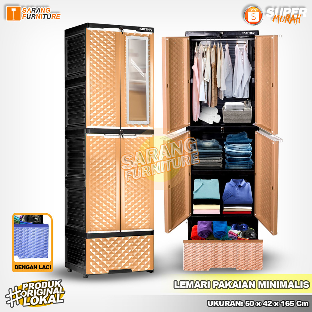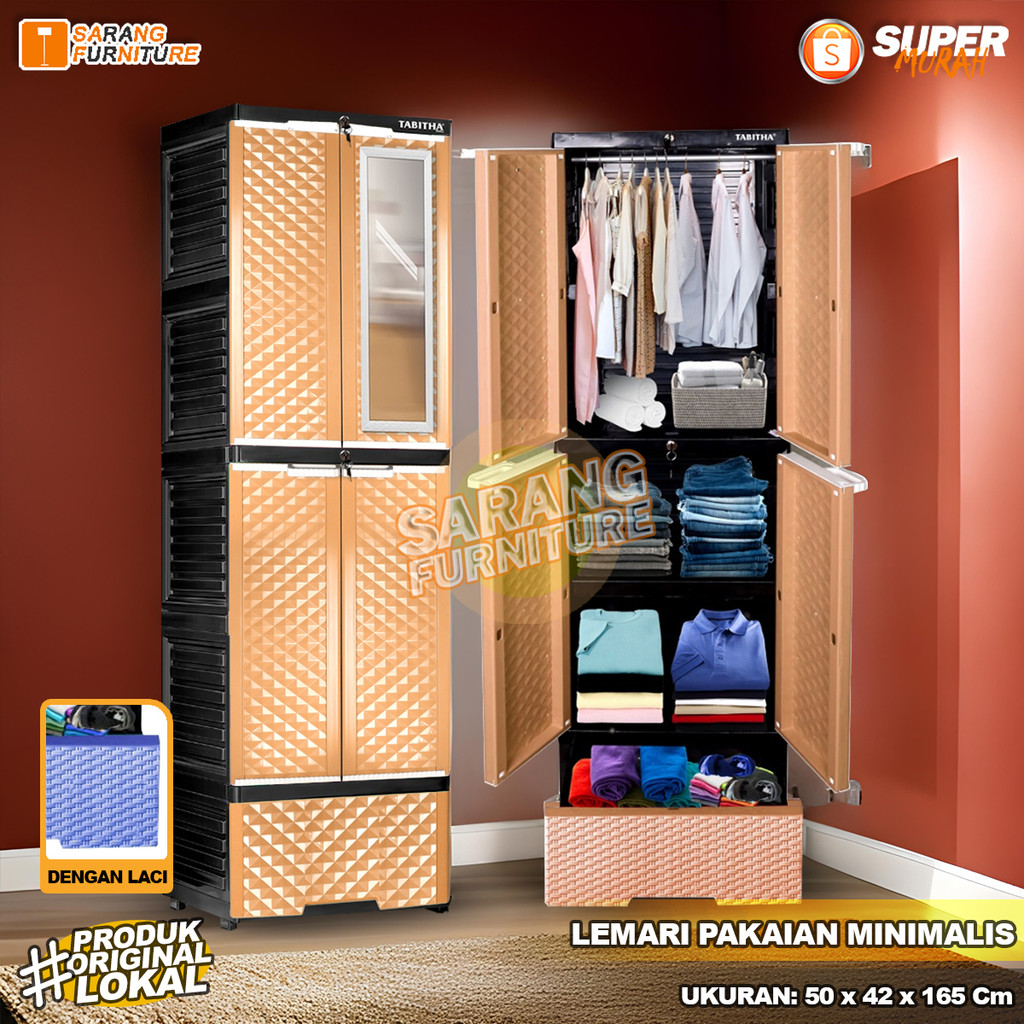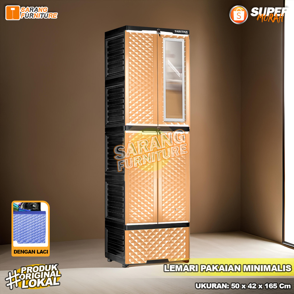 Tabitha LS2PL - Lemari Pakaian Plastik Gantung dengan Laci Lemari Pintu Rak Serbaguna dan Cermin