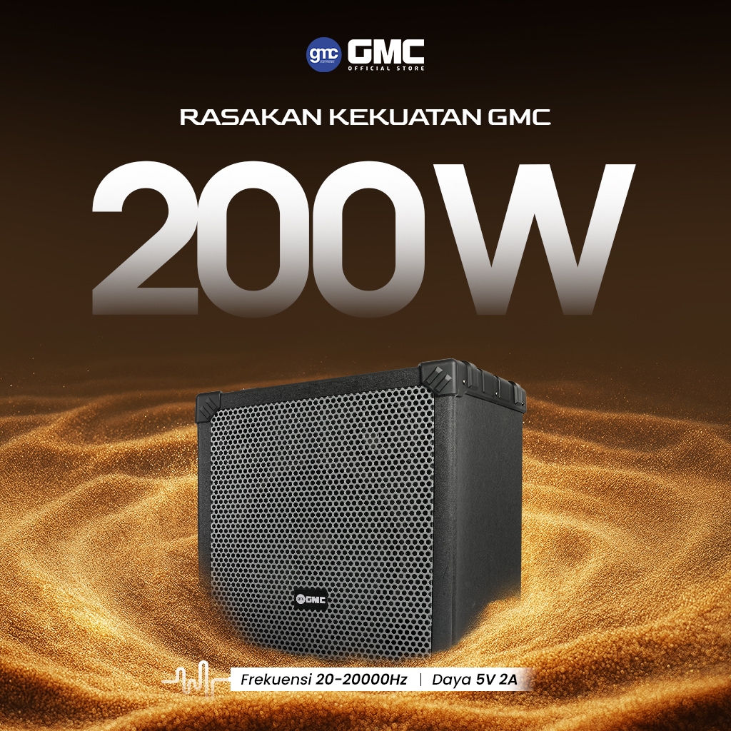 GMC Speaker 888S Professional Line – 10” Karaoke Speaker 200W dengan 2 Mic Wireless UHF, Bluetooth, Pairing & Baterai