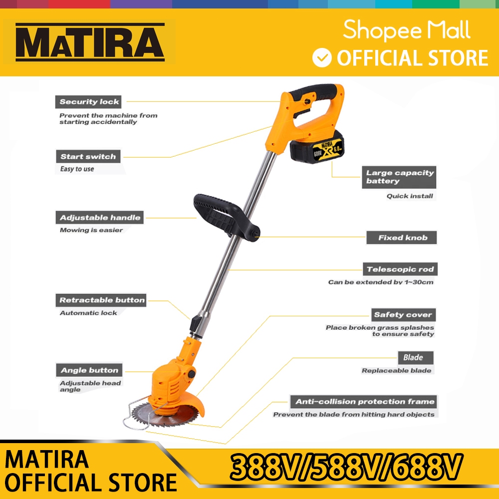 mall inline badgeMATIRA 688V 850W Mesin Potong Rumput Pemotong Rumput Listrik Pemangkas Rumput dengan Baterai Li-ion