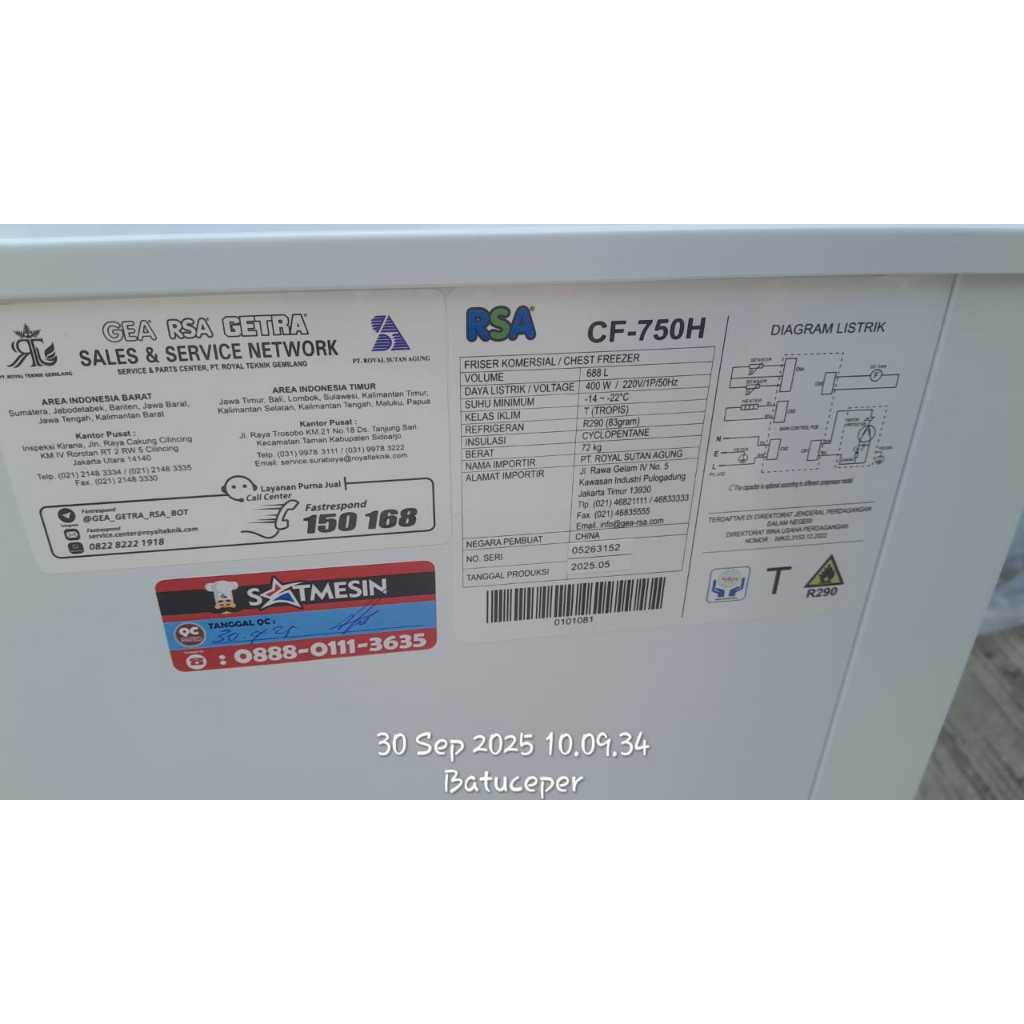 CF-750H CHEST FREEZER RSA GARANSI RESMI / FREEZER BOX SNI