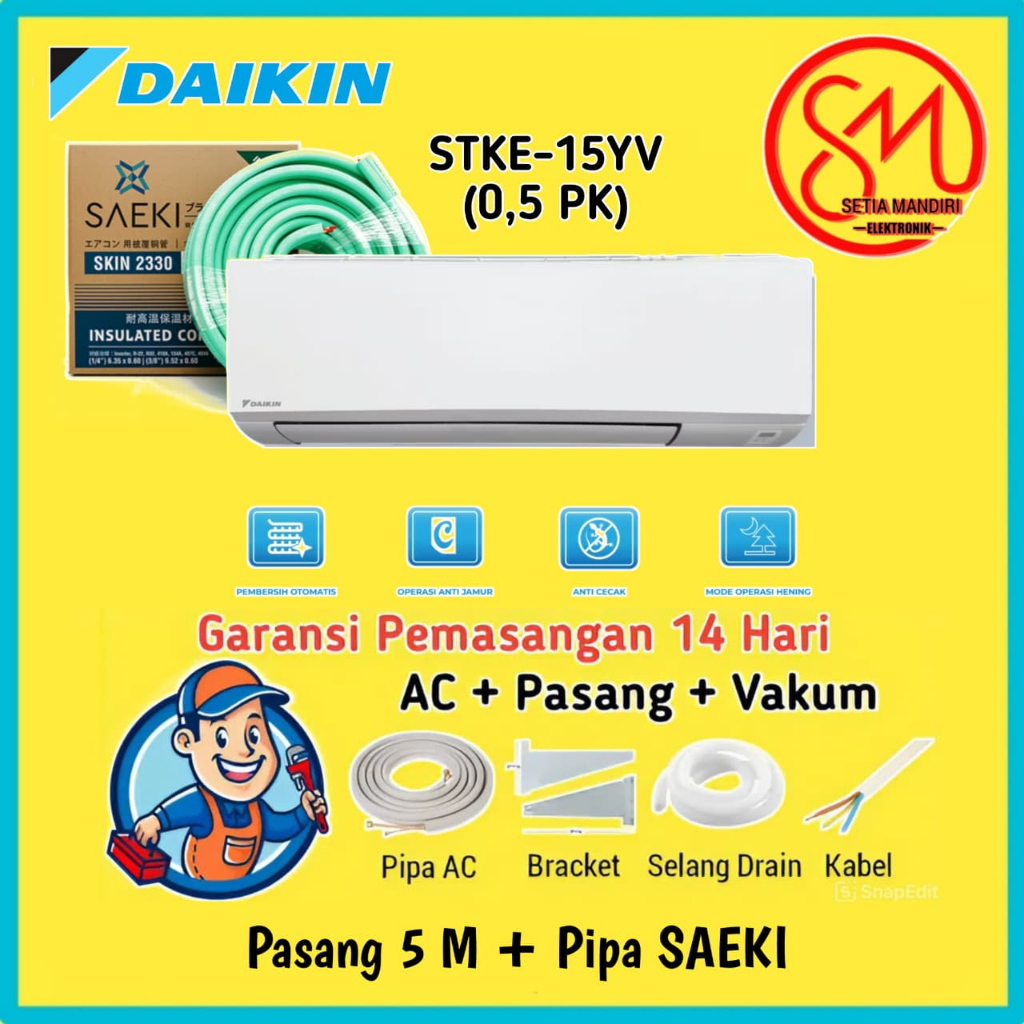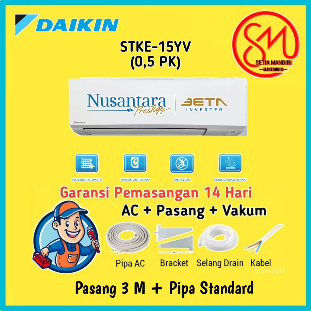 AC DAIKIN 1/2 PK Beta Inverter STKE15YV Nusantara Prestige Bluefin Coating Self Cleaning Anti Jamur