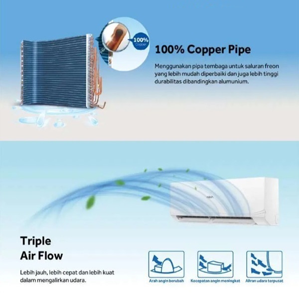AC AQUA AQA-KCR5FQDL + PASANG / 5 FQD(L) AC SPLIT 1/2 PK STANDARD TURBO COOL