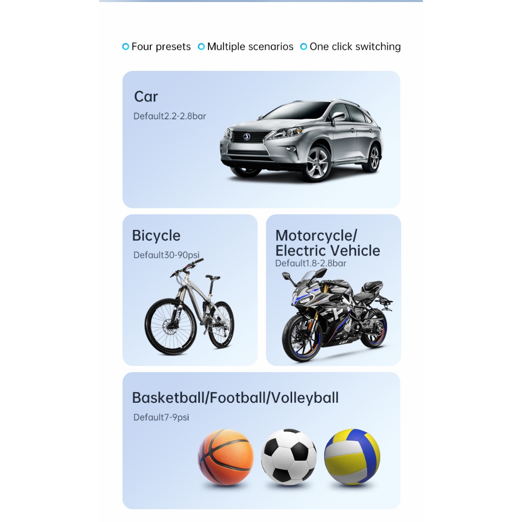 Homievolt Pompa Ban Electric Mobil dan Motor Tekanan Nirkabel Portabel Tampilan Cerdas Deteksi Car Air Pump Tire Inflato