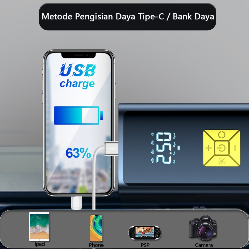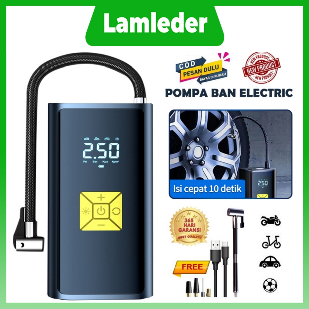 Lamleder Pompa Ban Electric Motor Mini Tekanan Nirkabel Portabel Tampilan Cerdas Deteksi