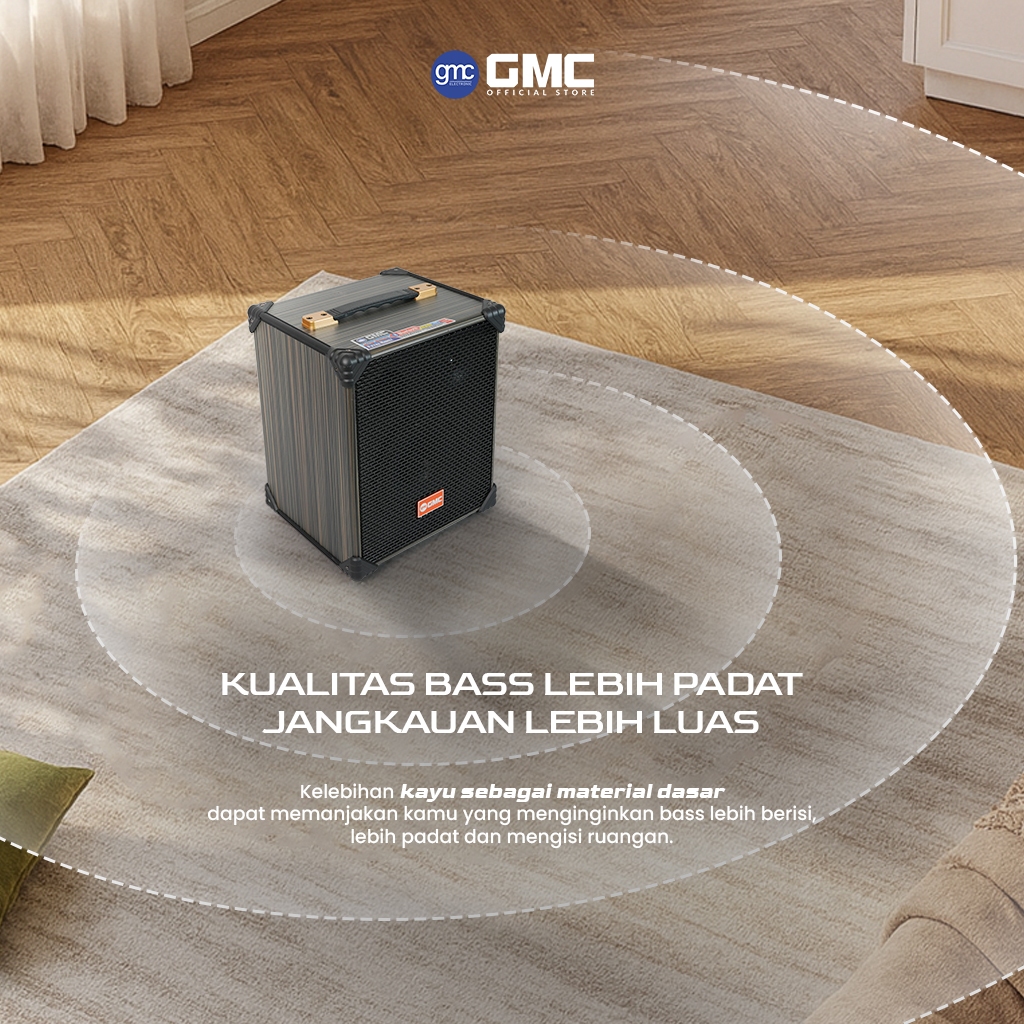 GMC Speaker 899P – Speaker Karaoke Bluetooth 6.5"– 125W, Gratis 2 Mic Wireless UHF, USB, AV, Radio