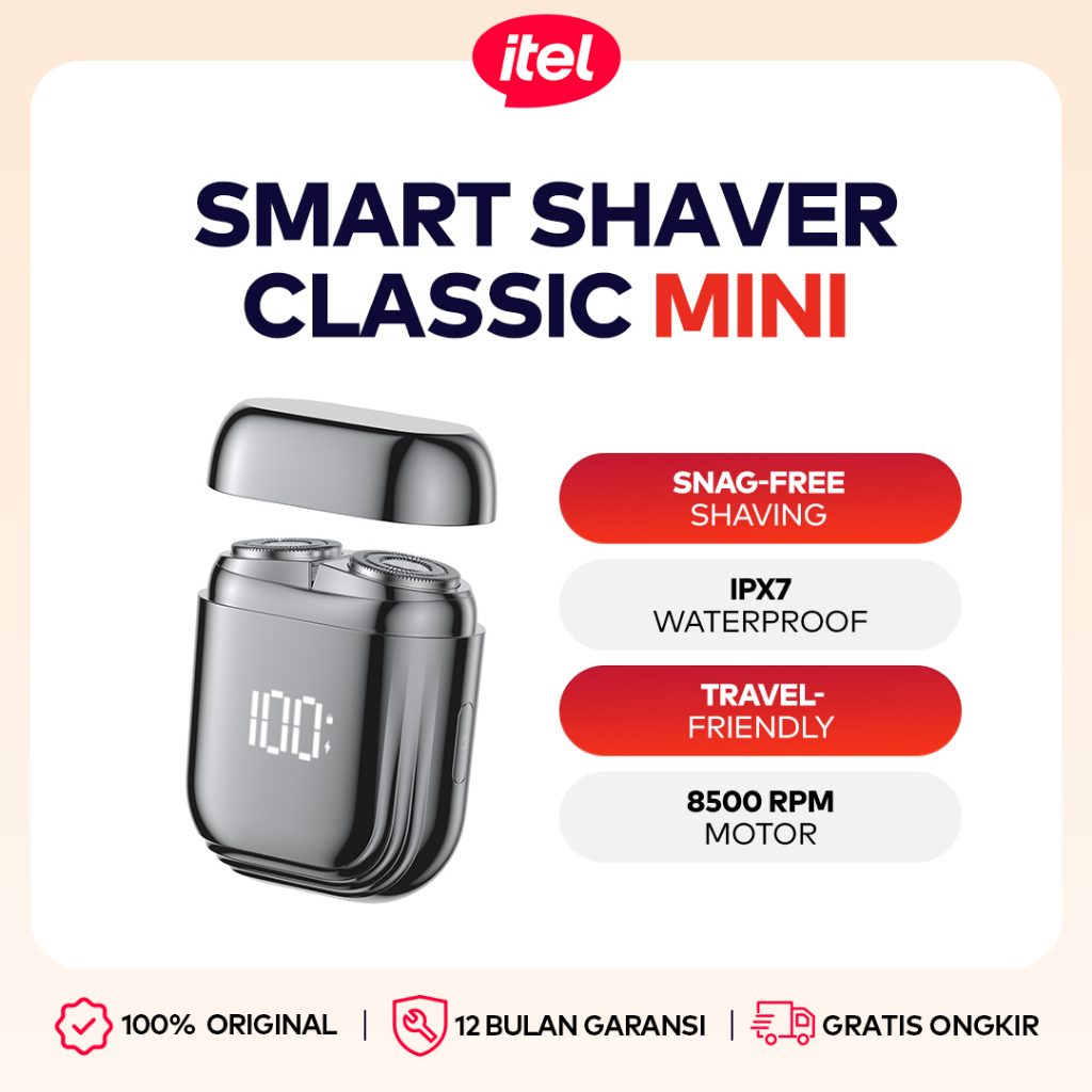 itel Classic Mini Shaver | Cukur Elektrik Mini Portable dengan Layar LED Pintar | Pisau Stainless Steel & Penutup Higien