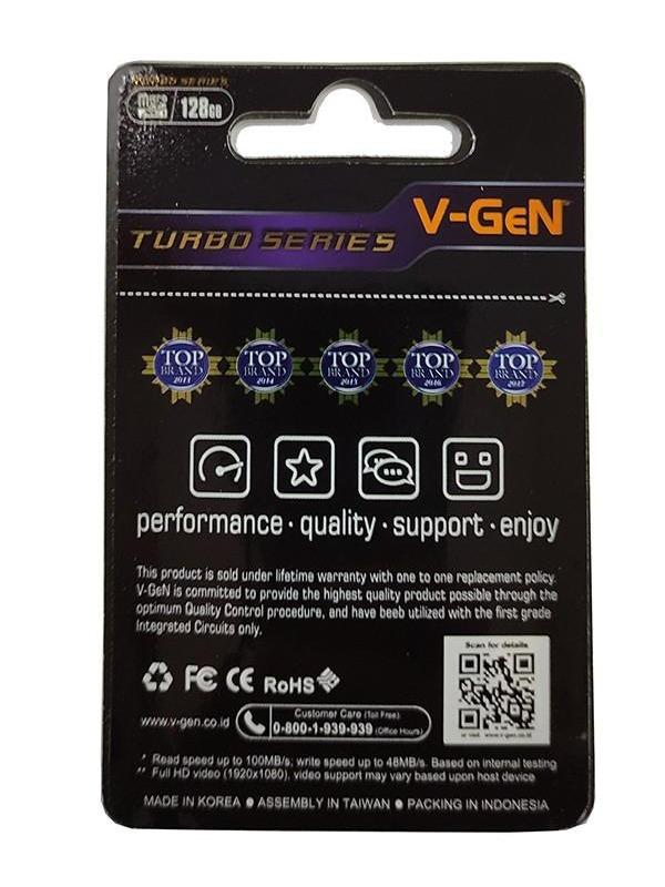 MICROSD V-GEN TURBO 128GB CLASS 10 MICRO SD 100MB/s MEMORY CARD V GEN