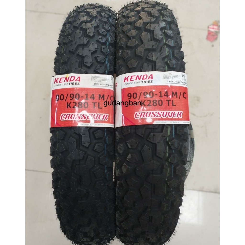 ( PAKET 2 BAN TUBELESS ) K280 - 80 90 14 dan 90 90 14 KENDA ORIGINAL Ban Motor Matic FREE P3NTIL