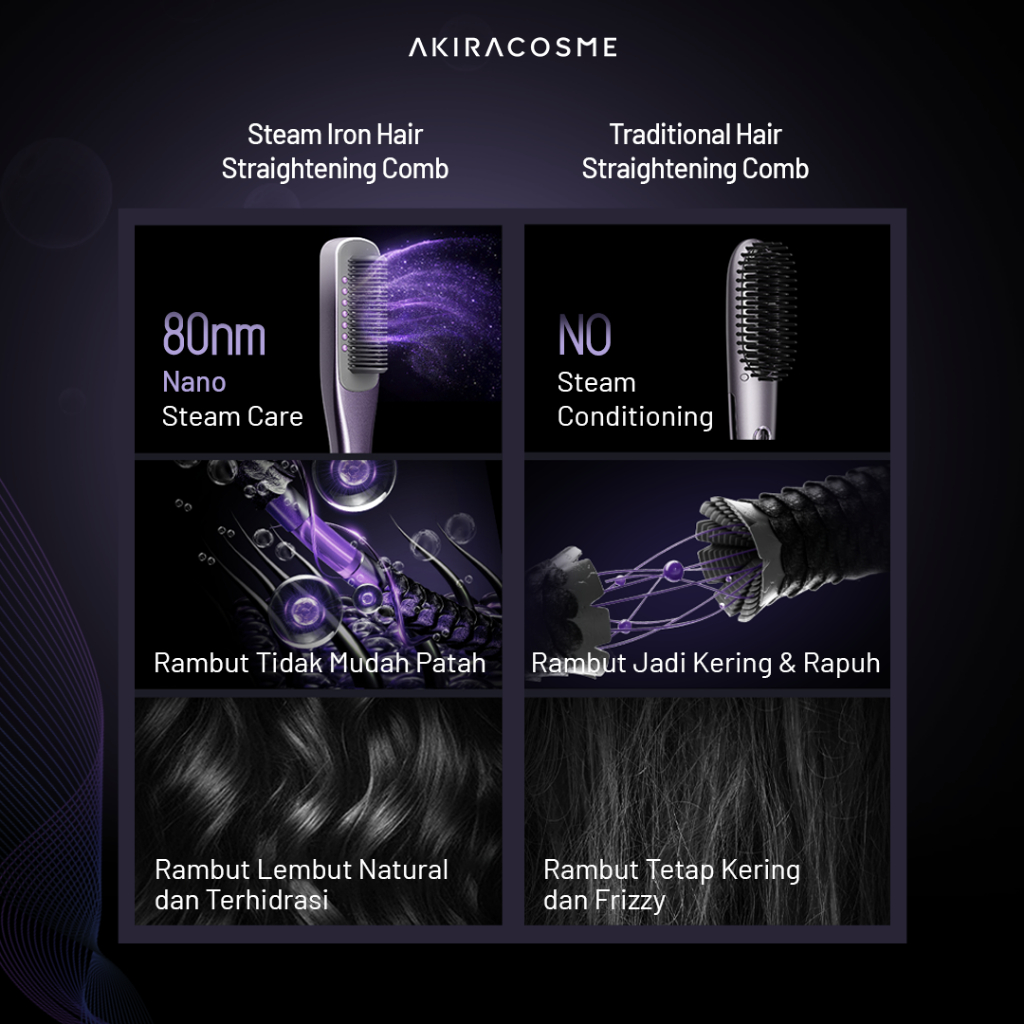 Akiracosme Steam Iron Hair Straightening Comb Sisir Catokan Pelurus Rambut Uap | AK-02SH
