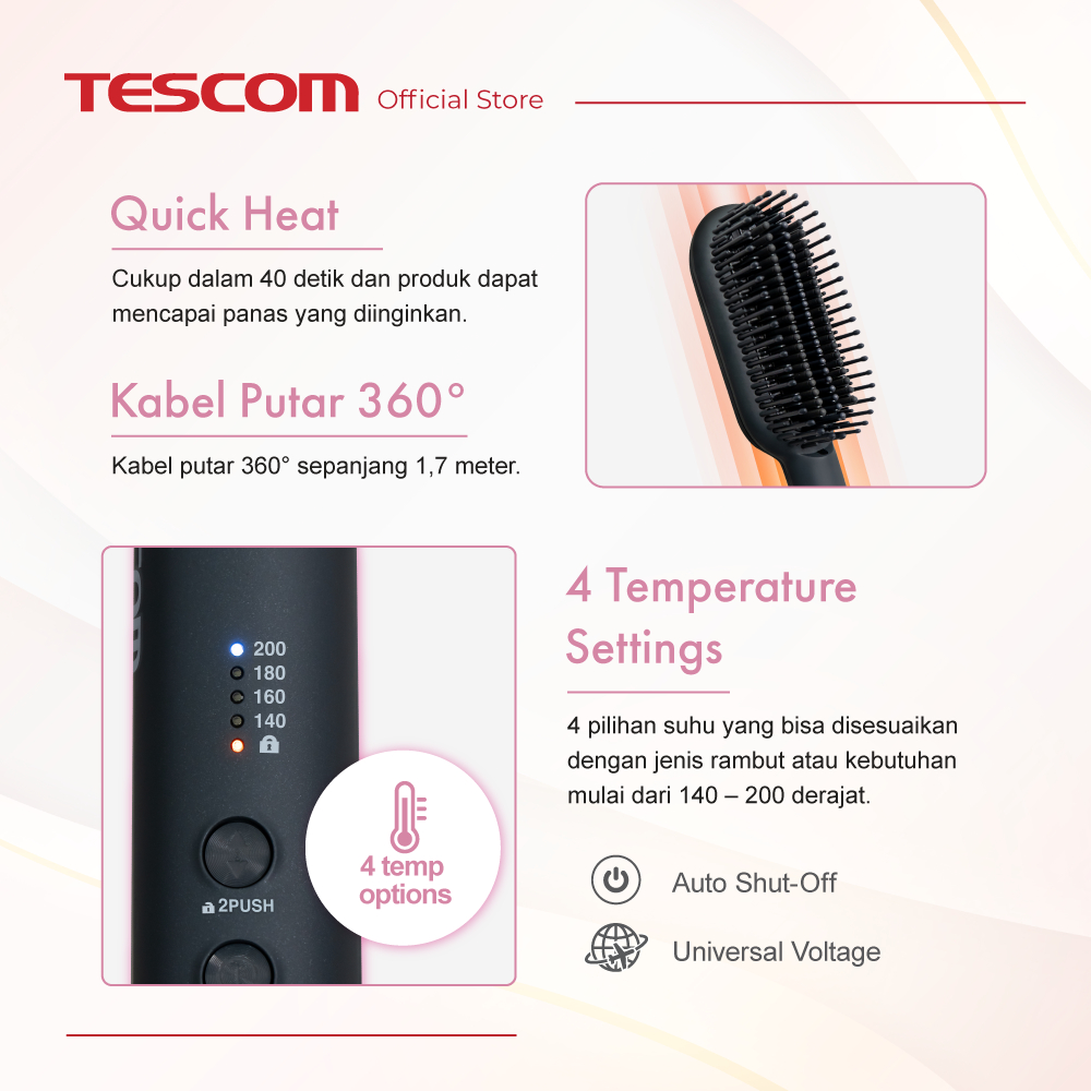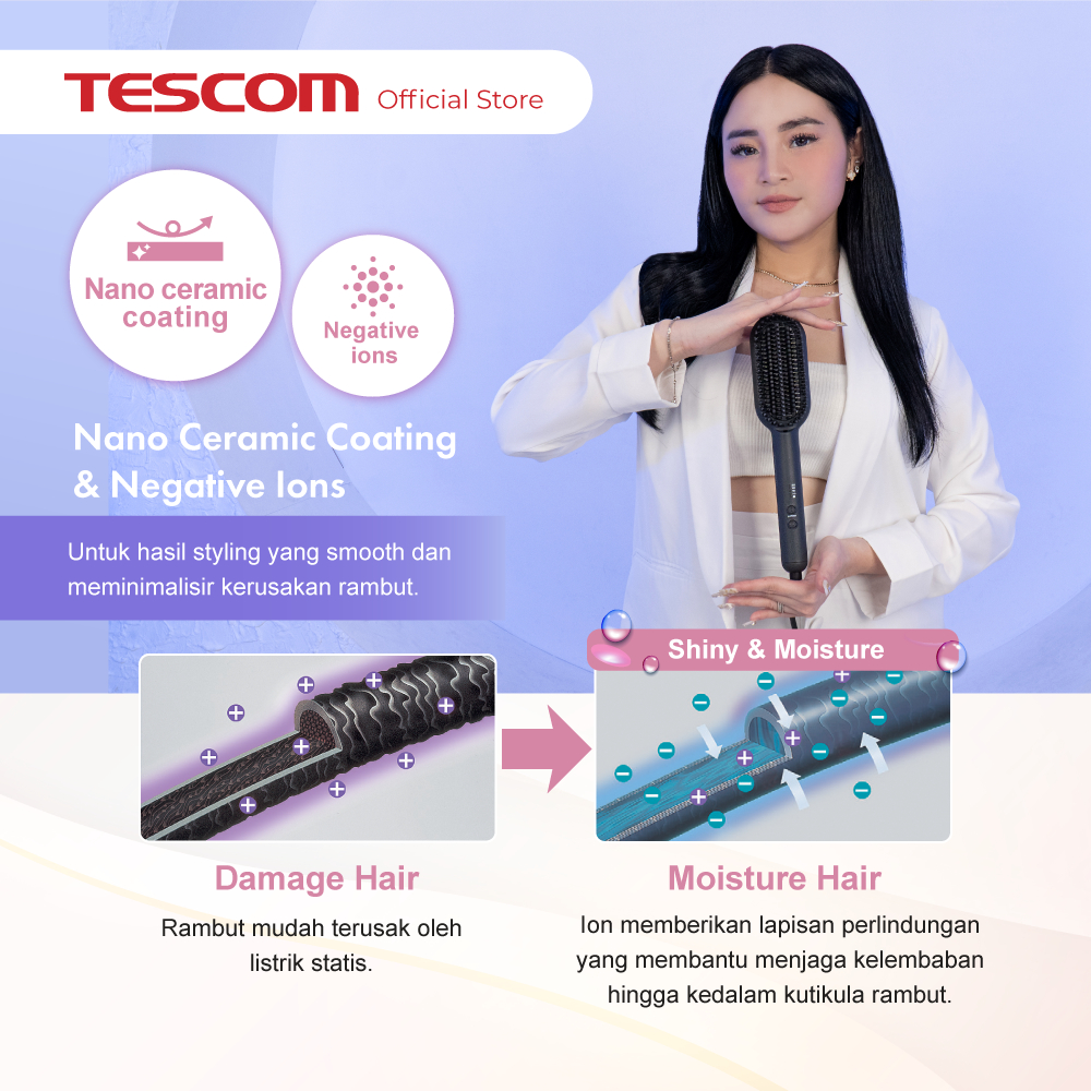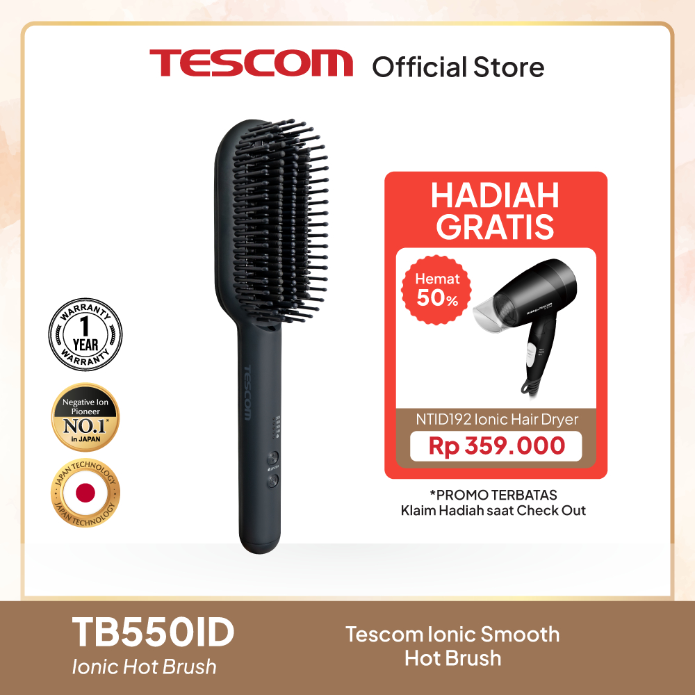 Tescom Ionic Smooth Hot Brush / Sisir Panas Pelurus Rambut TB550ID