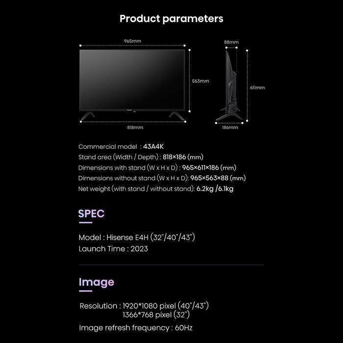 HISENSE Smart TV with VIDAA TV 32 INCH HD -32E4H