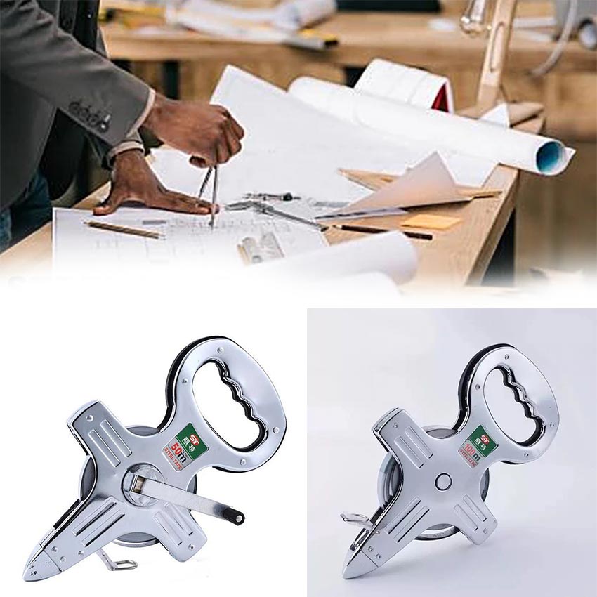 Stainless Steel Meteran Tancap Tanah Panjang 100 meter / 50 meter Meteran Roll 50M Meteran Gulung Fiber