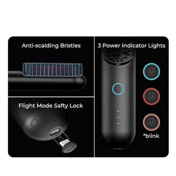 Ready STOCK Tymo PORTA Sikat Pelurus Rambut Tanpa Kabel, Mini Portable Dengan USB Rechargeable, Alat Rambut Ion Negati