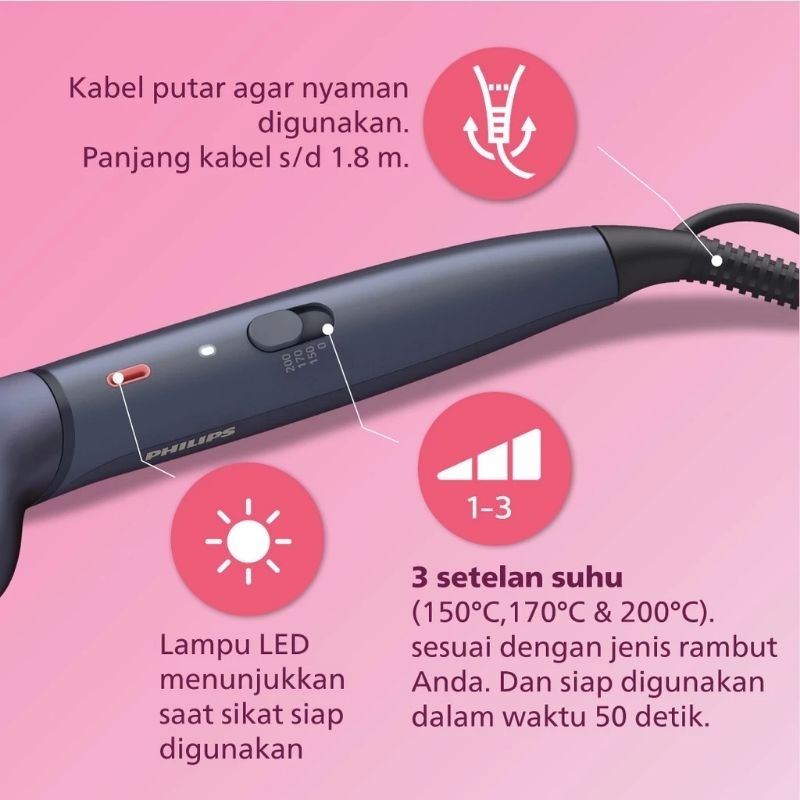 PHILIPS ThermoProtect Heated Straightening Hair Brush BHH885/00 Sisir Catokan Pelurus Rambut Natural Lurus Alami dalam 5
