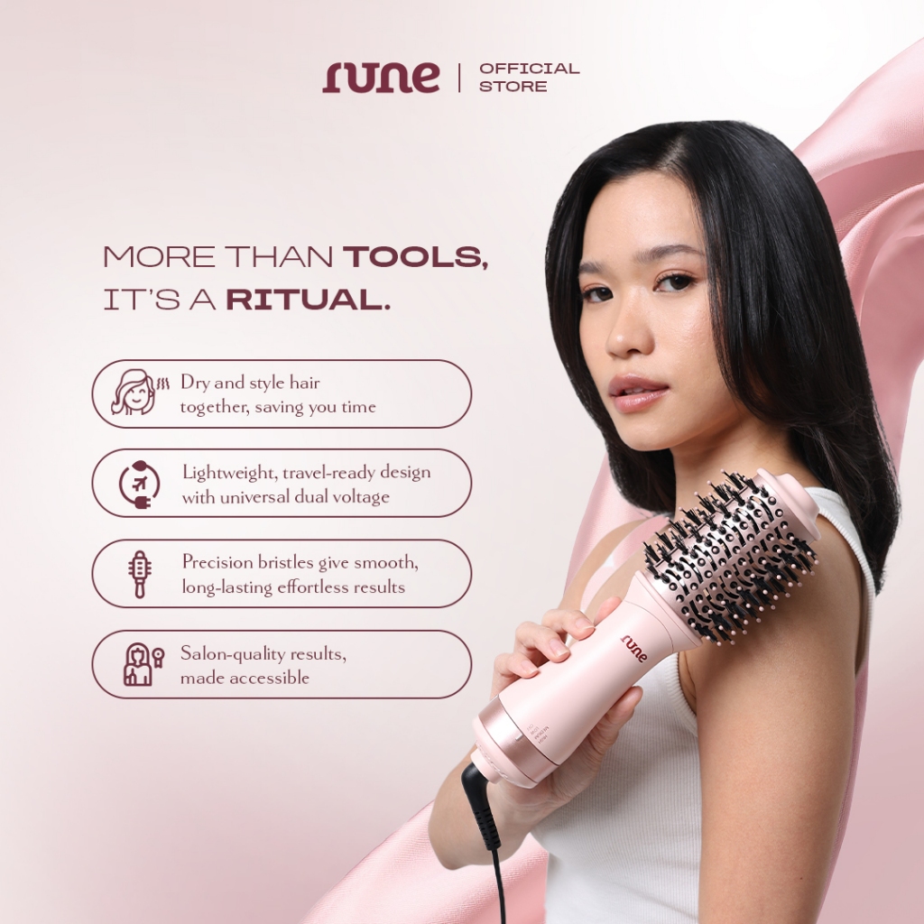 [EXCLUSIVE LAUNCH] RUNE - Airlume Hot Air Brush 2 In 1 Hair Dryer & Styler Ceramic Coating - Peralatan Styling Rambut Ca