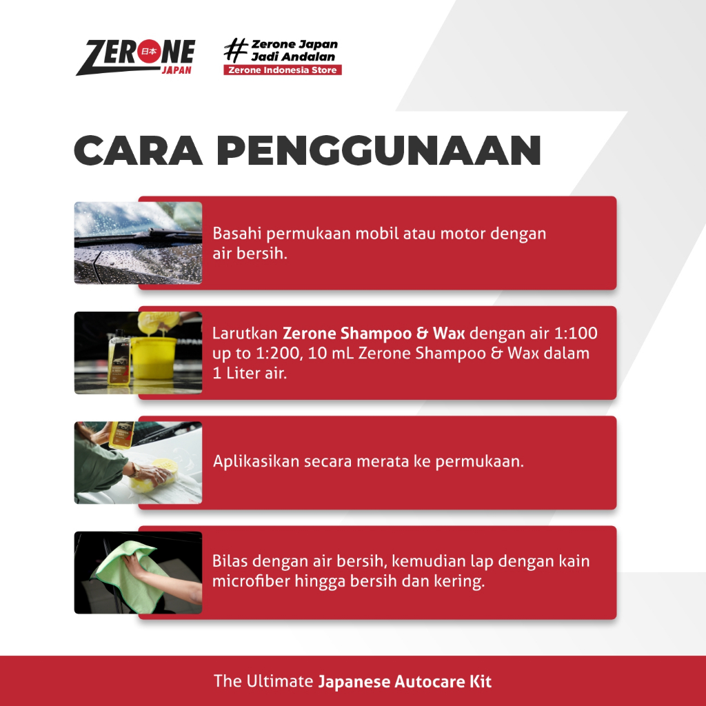 Zerone Japan Paket Lengkap Shampoo Sabun Cuci Mobil Motor Efek Daun Talas