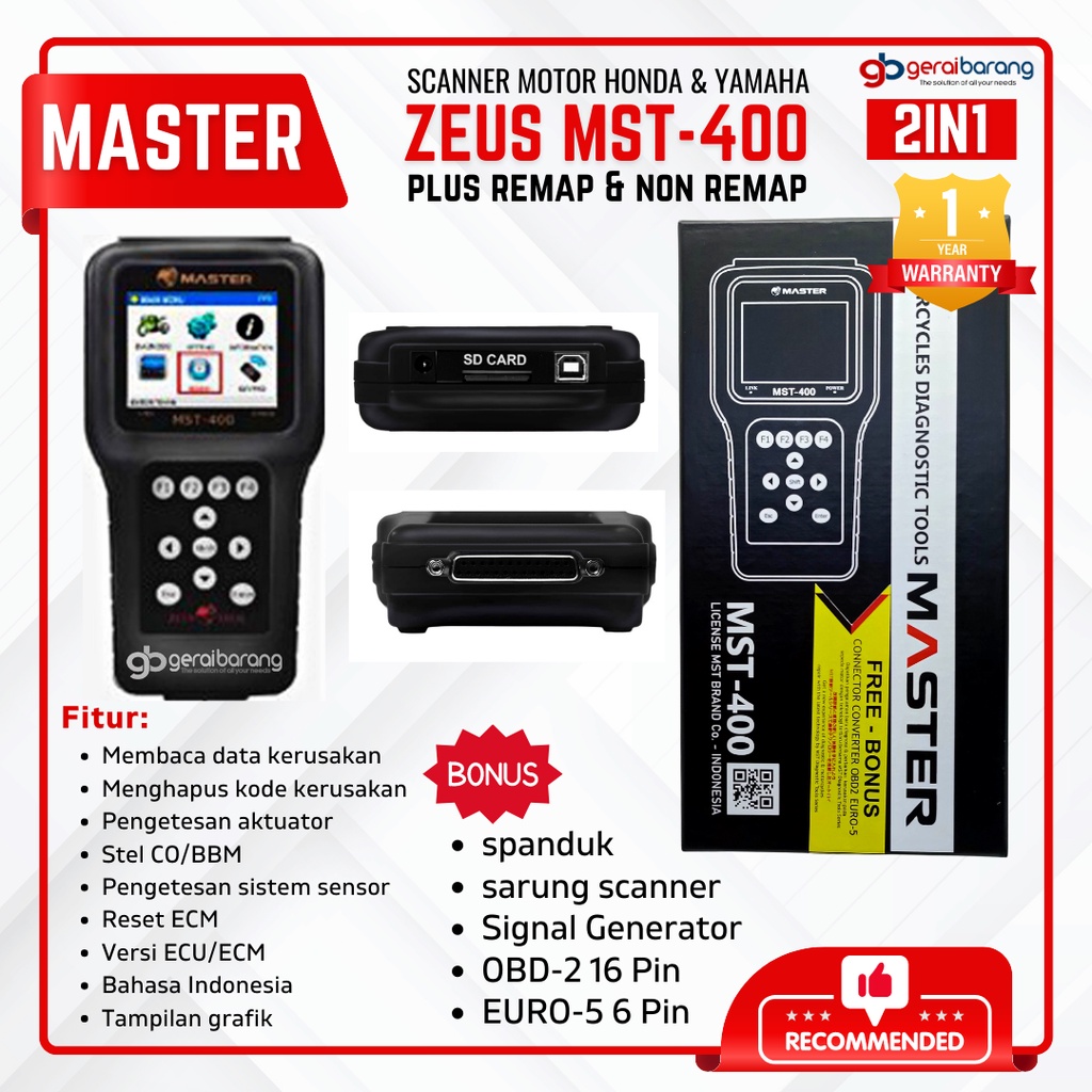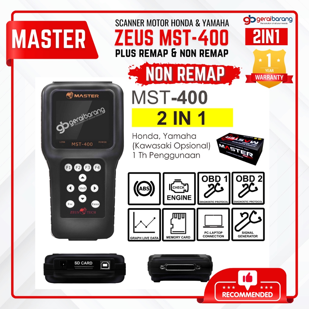 Scanner Motor Injeksi HONDA & YAMAHA - MASTER ZEUS MST-400 2in1 Dengan Remap Dan Tanpa Remap