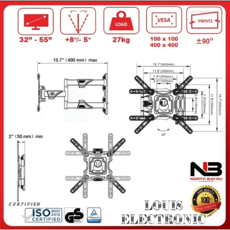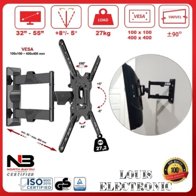 Bracket TV Swivel 32" - 55" NORTH BAYOU NB P4 Breket Brecket Kualitas Terbaik
