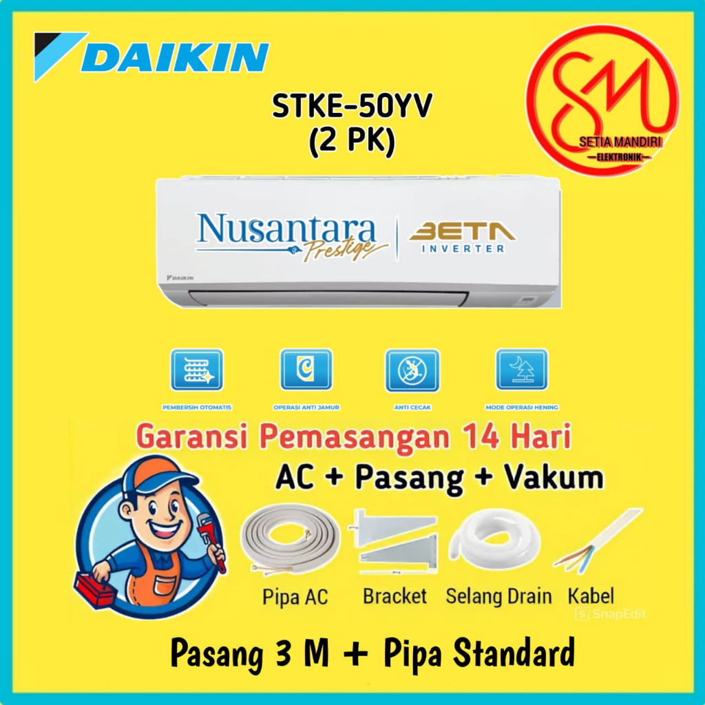 AC DAIKIN 2 PK Beta Inverter STKE50YV Nusantara Prestige Bluefin Coating Self Cleaning Anti Jamur