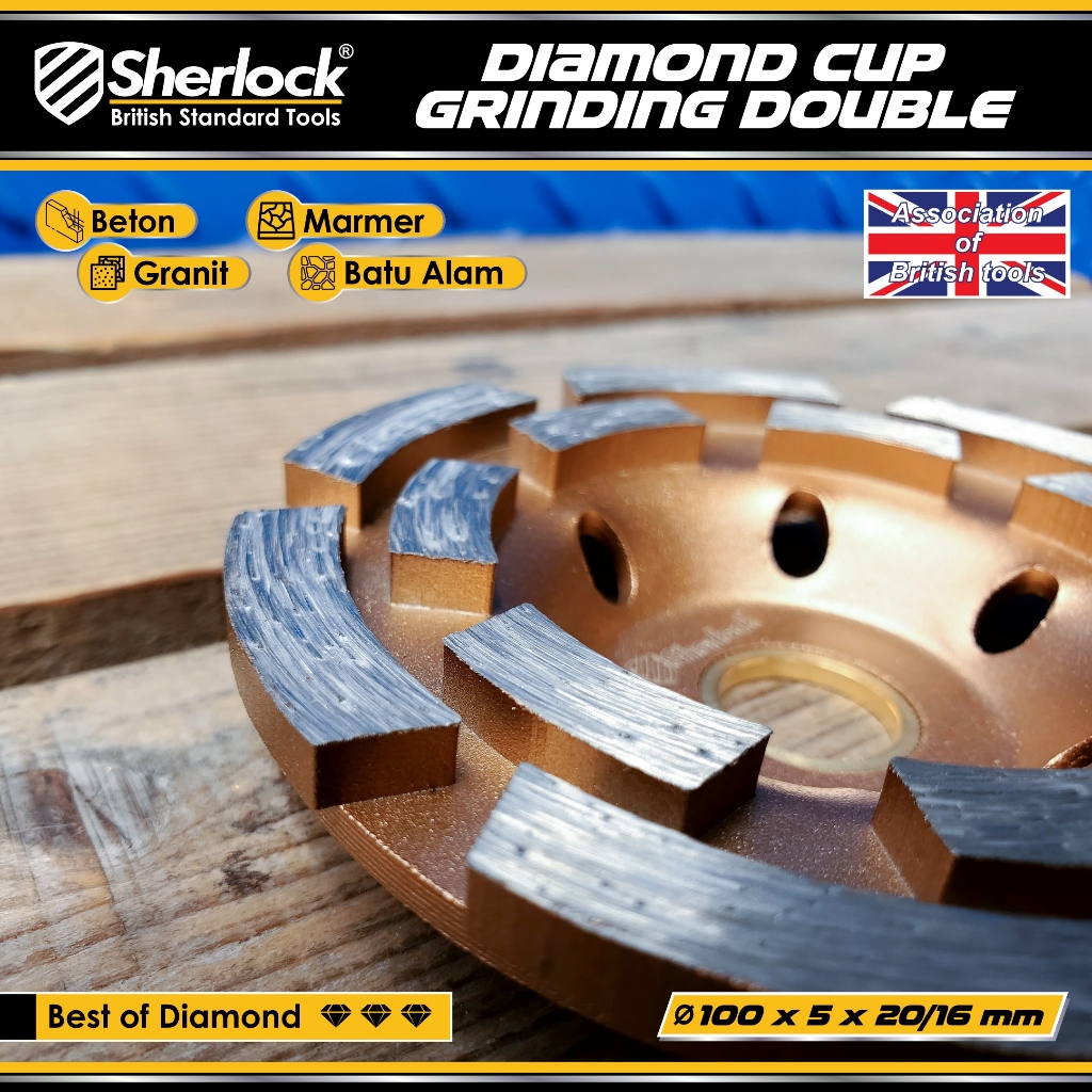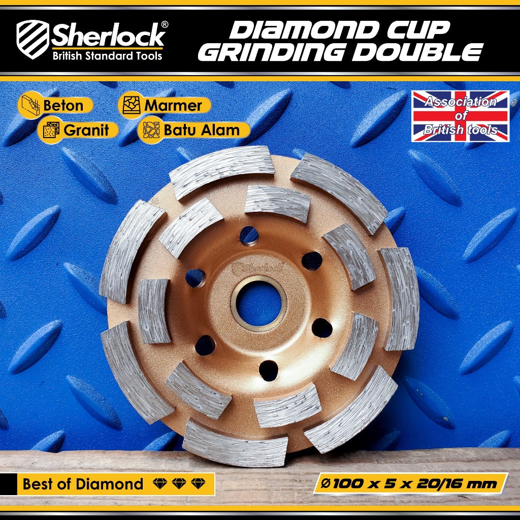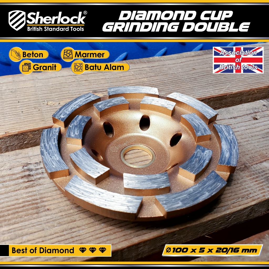 Diamond Cup Grinding Wheel Double Line 4 " inch Poles Beton Sherlock Original