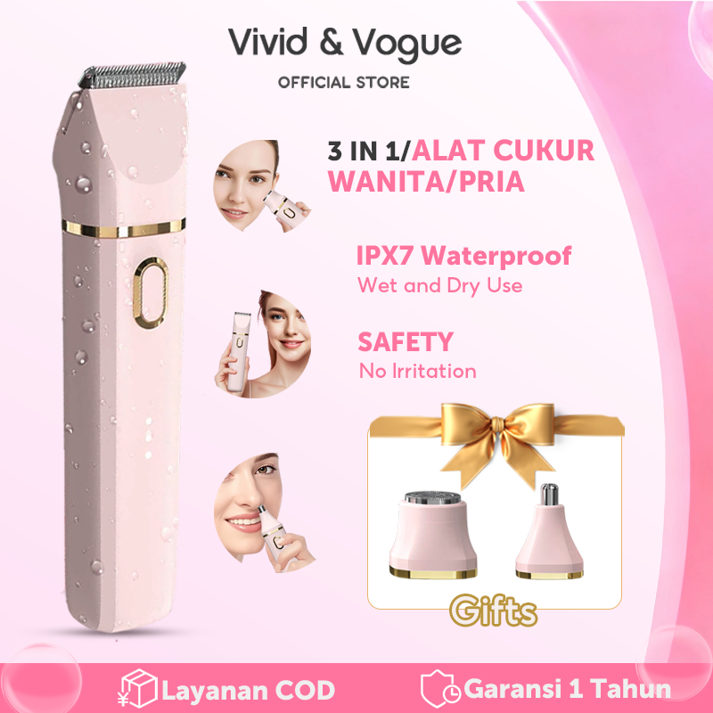 Vivid&Vogue New 3in1 Alat Cukur Wanita/Pria Tahan Air Alat Cukur Bulu Kemaluan Mini Epilator Shaver Hair Pencukur Bulu K