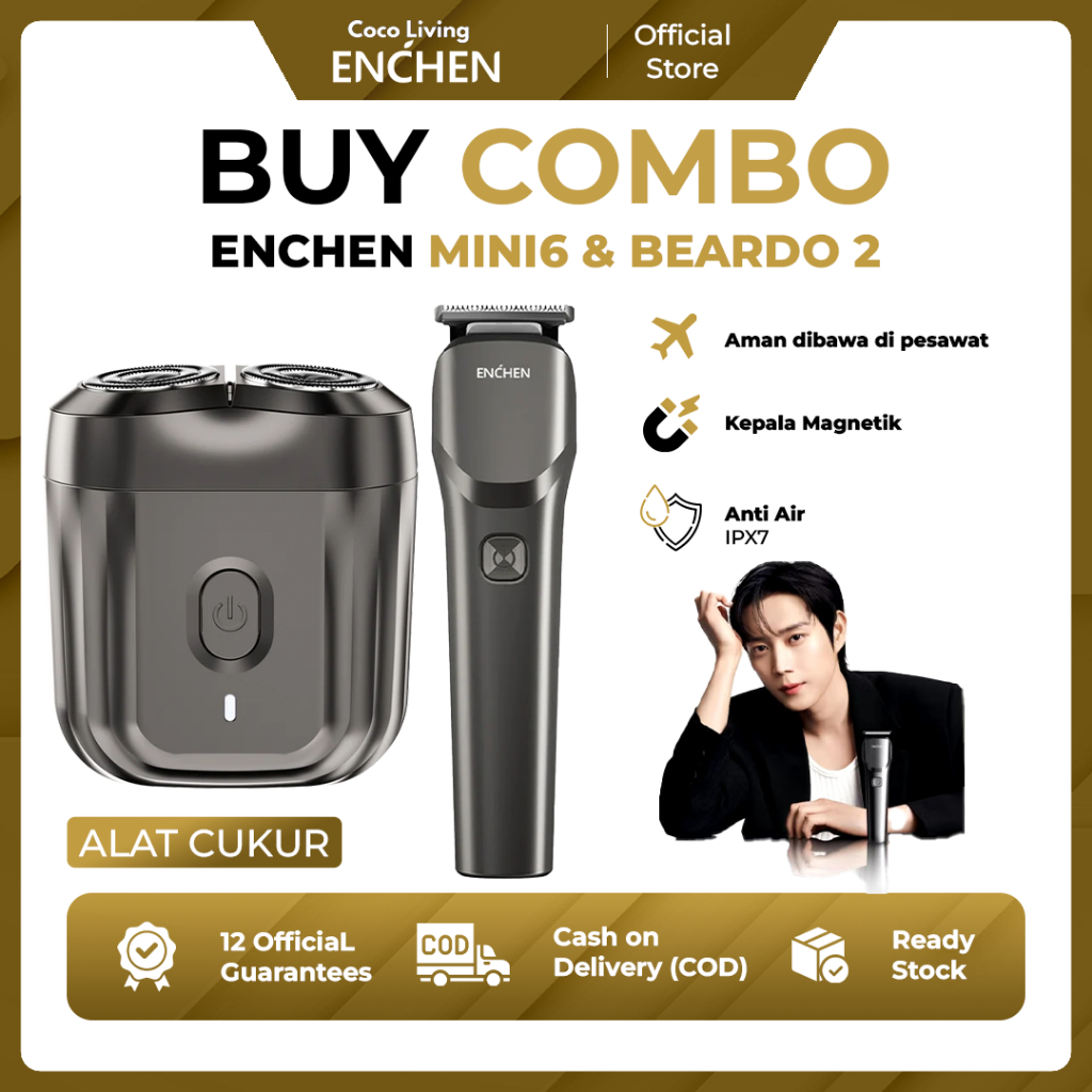 ENCHEN - Paket Kombo Mini 6 & Beardo 2 Shaver Alat Cukur Pencukur Kumis Jenggot Rambut Elektrik Shavin