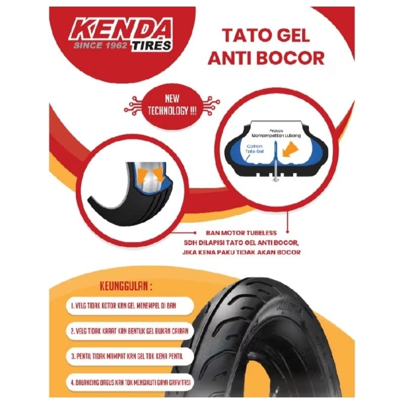 BAN LUAR MOTOR KENDA K6022 TATO GEL ANTI BOCOR PAKU TUBLESS 80/90-14 90/90-14